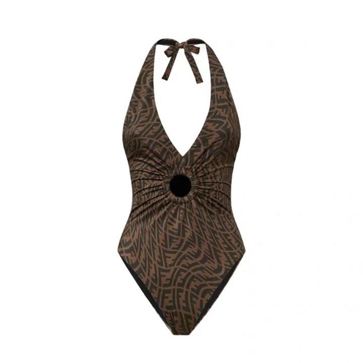 For a trippy psychedelic look at the beach, throw on this Fendi swimsuit that features a ’70s-inspired monogram pattern designed by New York-based visual artist Sarah Coleman.