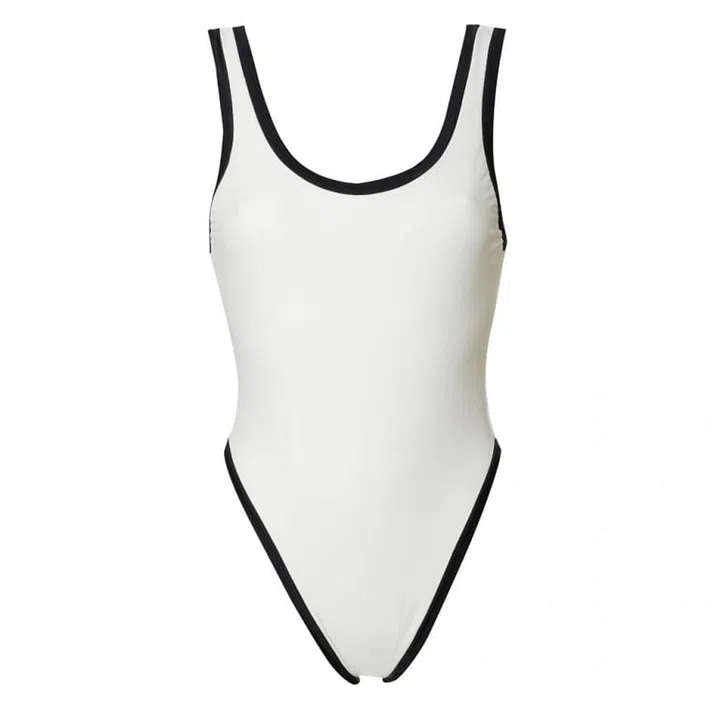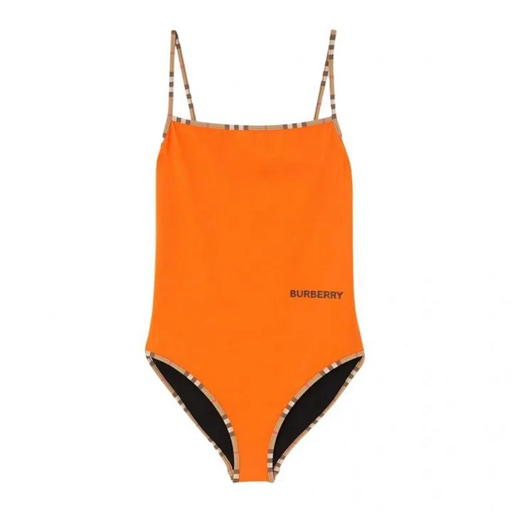Strike a bold look in this Burberry swimsuit that features edges bearing the English brand’s trademark plaid stripes. Hot tip: Dress this out of the pool/water with pair of cargos for a hip Y2K look.