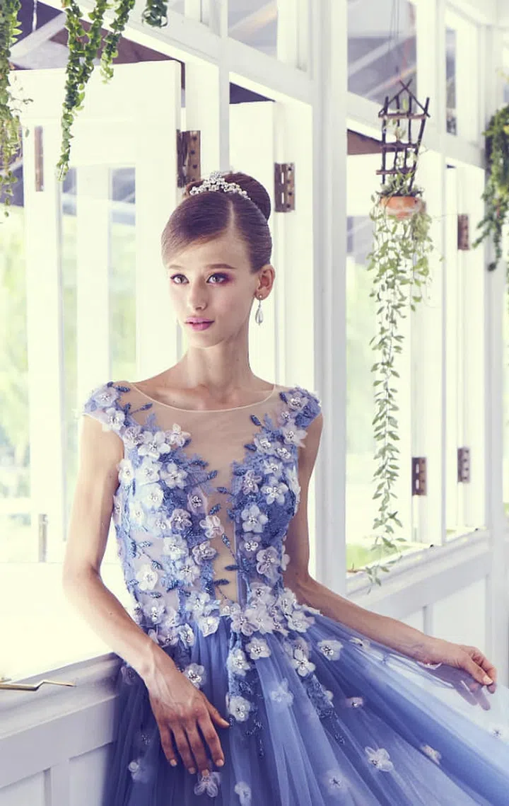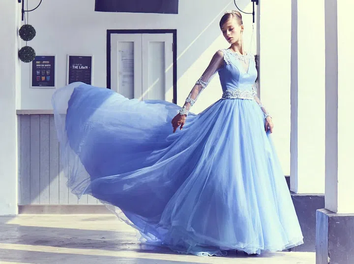 Sweep everyone's feet away with this romantic blue confection given a feminine and vintage touch with hints of lace.