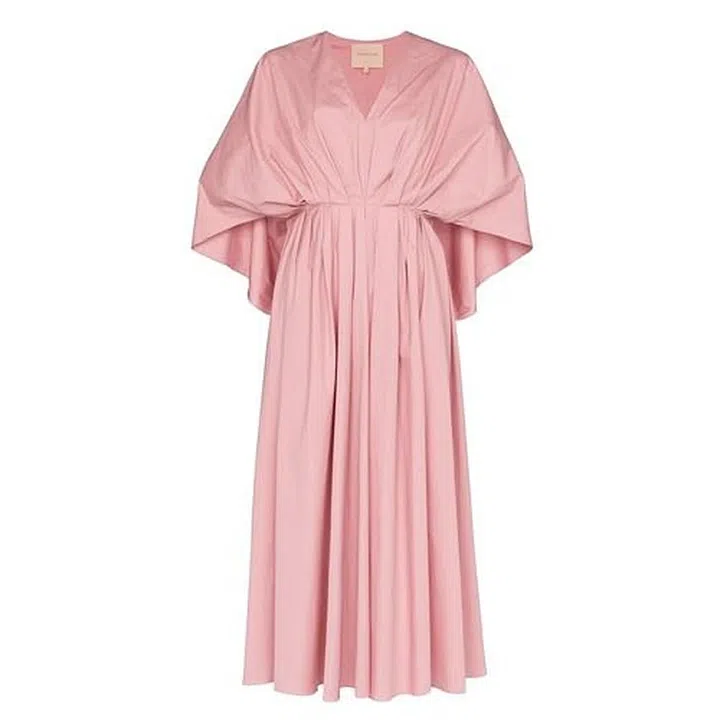 Roksanda’s crisp midi dress features cape-like sleeves and voluminous proportions harmoniously interacting with a contemporary bright pink shade and chic pleated details. The relaxed silhouette will keep you feeling light and breezy on warmer days, and we predict that this will soon be your favourite thing to reach for when it comes to lazy weekday mornings. Simply slip into this pretty number alongside a pair of pointed toe pumps and a silver chunky chain necklace for a day at the boardroom.