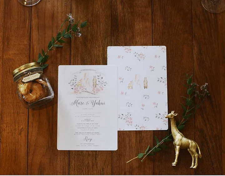Moving away from the traditional invites– because as much as they have their own old-school charm it isn’t for every couple in the 21st century; and let’s be honest, most complimentary invites from hotel packages, albeit free or discounted, are tacky and seem to have no sincerity to it at all. These invites from both local designers are bound to convince you to invest in a custom-made wedding invite, filled with personal touches to make it all the more special for you and your guests.