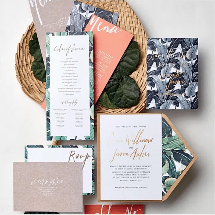 No need to rely on pretty florals or watercolored details to create a pretty invite and Nineteen Design proves just that. Their print series are just as stunning, with a few handwritten font to finish the prints of perfectly this wedding suite will invoke a sense of wanderlust (or a sudden desire to go on a vacation) in your guests. Perfect for your paradise wedding.