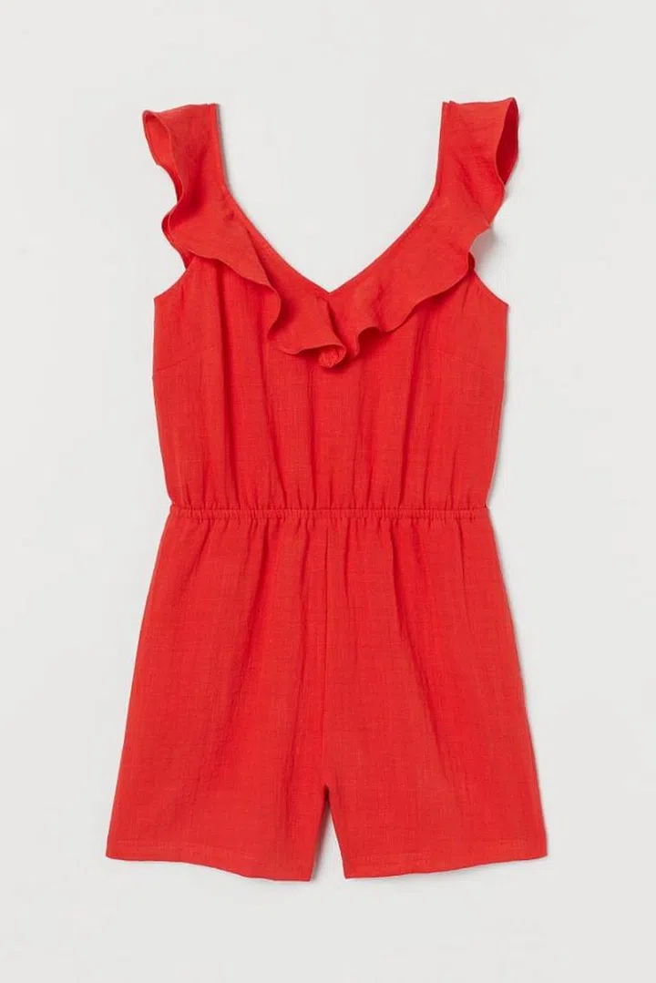 Playsuit—or jumpsuit—is a great way to wear red without the hassle of mixing and matching pieces together.