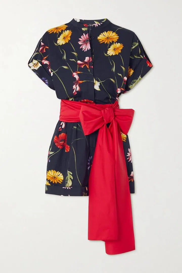 Bow-Detailed Floral-Print Cotton-Blend Poplin Playsuit, S$824, Oscar de le Renta at Net-a-Porter