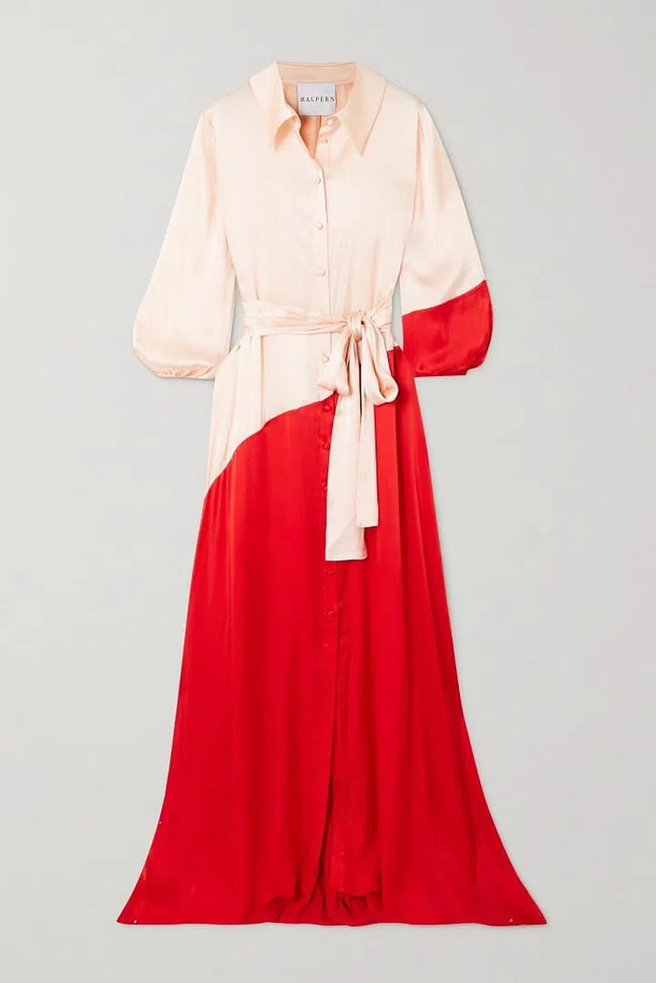 Belted Asymmetric Two-Tone Satin Maxi Dress, S$2,241, Halpern at Net-a-Porter