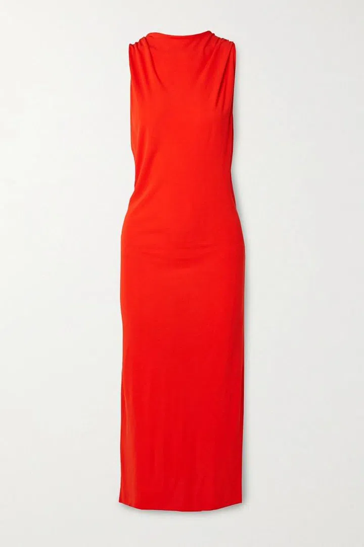 When you’re home, there’s no dress code. So what’s stopping you from going full glam for the gram à la Duckie Thot here in a fabulous scarlet red dress.
