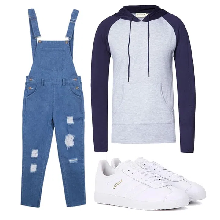 This look was inspired by Tupac, which will get you looking both cute and feisty at the same time! Don your favourite denim overalls over a dark coloured hoodie and complete it with clean white sneakers. For a cooler look, wear your hoodie with short dungarees. Image: Zalora, Adidas