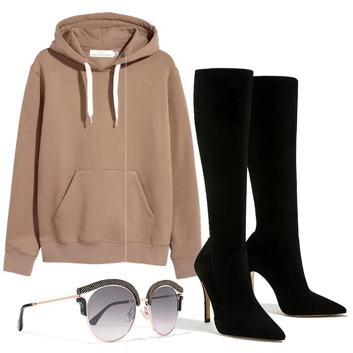 For a more “celebrity on her day off” kind of vibe, adopt a your boyfriend’s oversized pullover hoodie and wear it over short shorts. Complete this effortlessly sexy look with knee high boots and sunglasses. For a little extra flair, tie a flannel around your waist under your pullover. Be prepared to be mistaken for a celebrity! Image: H&M, Zara, Net-a-Porter