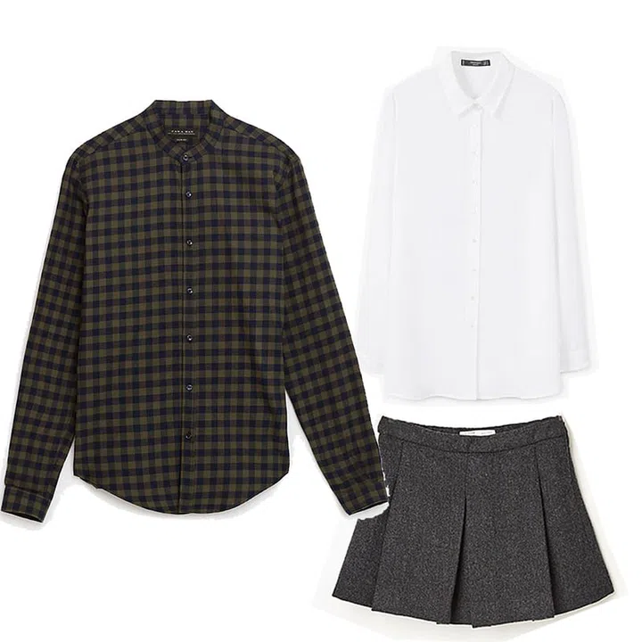 If you’re feeling that ‘90s vibe, tuck a white dress shirt into a black or grey skater skirt and tie your flannel around your waist. You can go a step further and channel Britney Spears in her (Hit Me) Baby One More Time music video by pulling on black stockings and donning a pair of black Mary Janes. Image: Zara