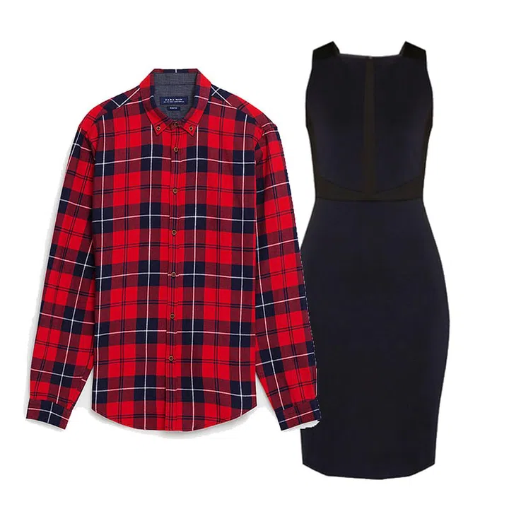 For days when you don’t feel like layering heavily, throw a flannel shirt over a little black midi dress and tie the unbuttoned shirt in the front. Image: Zara, Zalora