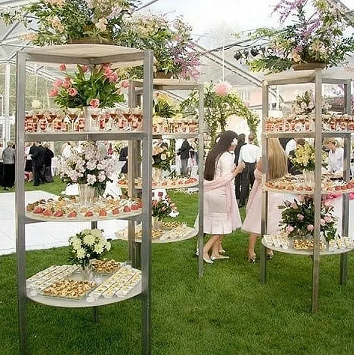 Serve canapes on these tiered display stands and watch your guests make a beeline for the food. Not only do they add elegance and much wow to your reception, the tiered stands are also great space-savers.