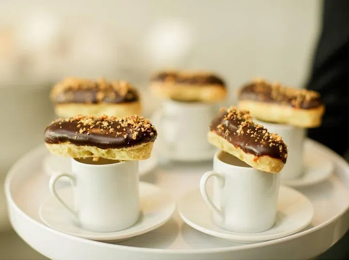 Here's how you can upgrade eclairs and coffee (or hot chocolate) - by downsizing them. These bite-sized eclairs with mini beverage cups aren't just easy to eat, they make more of a statement than their regular counterparts.