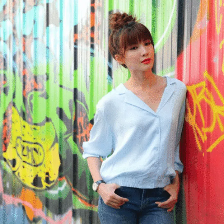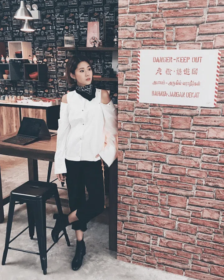 The pyjama shirt is one of our top picks for a weekend ensemble. The laidback vibe is perfect for when you’re off duty, yet the chiffon or silk elevates it from the usual sleepwear. Pairing with jeans would be the obvious choice for that casual chic look. Jeanette Aw completes her no-frills #OOTD with a high bun and a striking red lippie – way to shout “I’m effortlessly chic like that”.