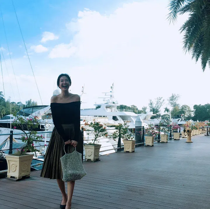 Instead of denim overalls, choose something rendered in white for a change, and go with a top with interesting details to make your outfit pop. Julie Tan’s top has studs at the neckline, so she doesn’t need to accessorise with a necklace. Don’t forget those shades, which you can casually wear on top of your head to visually lengthen your face and make it look slimmer.