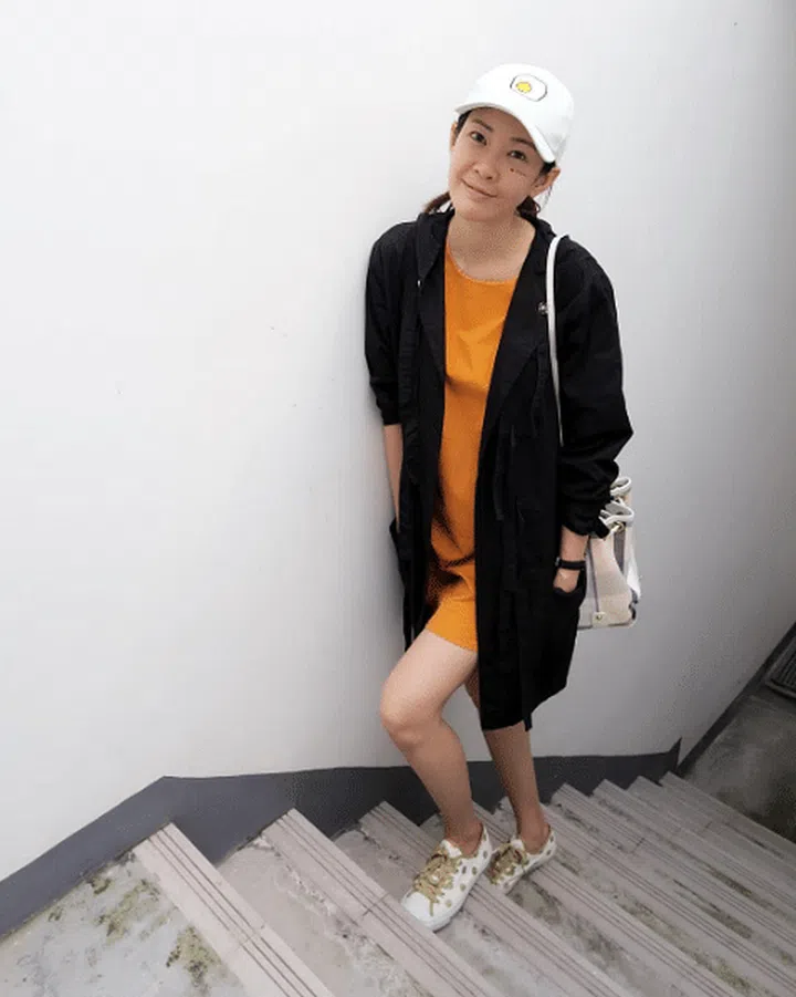 The weekend should always call for a celebratory pop of colour, and we love how Jesseca Liu matches her orange dress with a cute egg-print cap. Then there’s the inspired choice of her jacket, which provides an interesting contrast without coming across as overly jarring. If the idea of wearing a jacket doesn’t sit well with you, you can always tie a shirt around your waist to keep cool and switch things up.