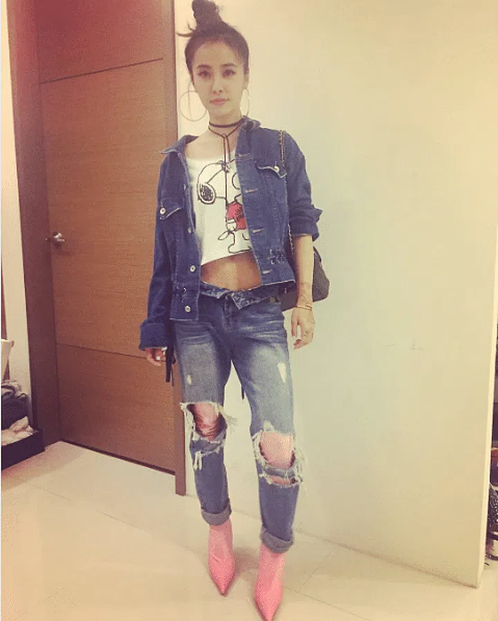 Weekends are for us to unleash our inner child, so it’s time to bring out your favourite graphic tee, and throw on your trusty denim jacket. As for the bottom, ripped jeans are a must in any self-respecting fashionista’s weekend wardrobe. We’re digging how Jolin Tsai teams hers with thigh-high pink boots so they peep through the holes. Alternatively, you can rock the recent (and rather risque!) trend of wearing fishnet tights underneath.