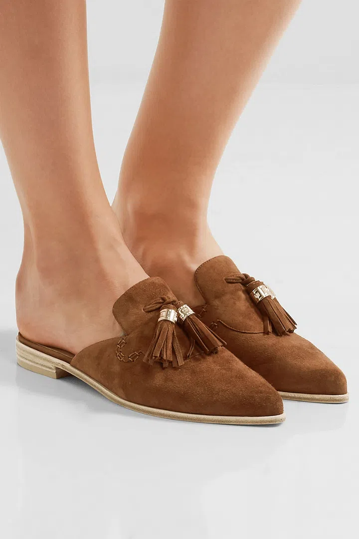 Flat mules quite literally come in all stripes and colours, from embellished and sequined to textured and sleek. Image: Net-a-porter