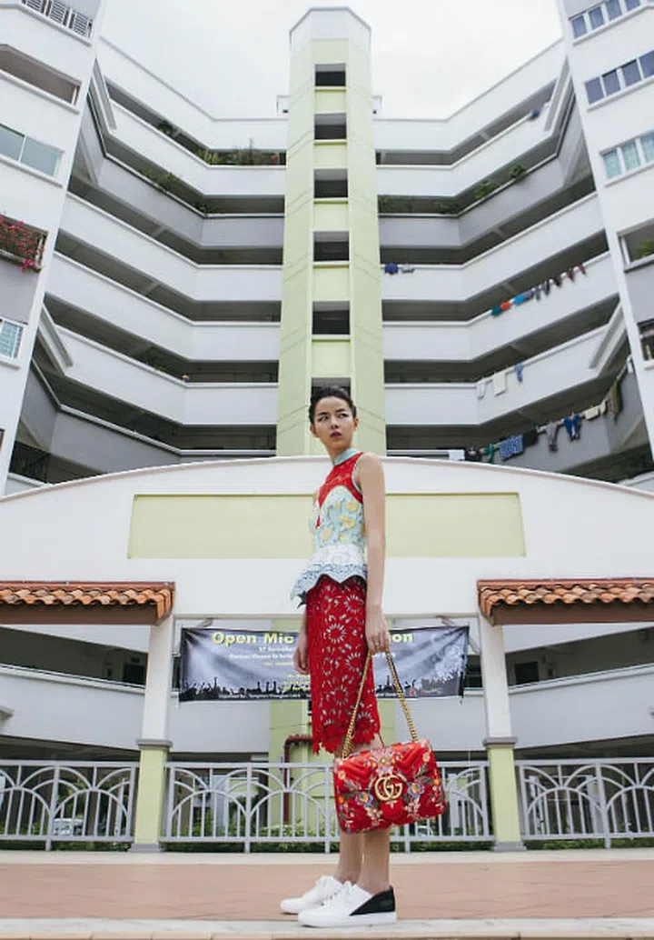 Yes, yes, I know we’ve already given you one perfect cheongsam from Ong Shunmugam, but we couldn’t resist adding another one to our list, particularly as the colours of this one are just so pretty. Jasmine is wearing the Suet Yin Dress by Ong Shunmugam, with sneakers by Charles & Keith and carrying the GG Marmont Medium Shoulder Bag in Red Matelasse Floral Jacquard Fabric and GG closure by Gucci.