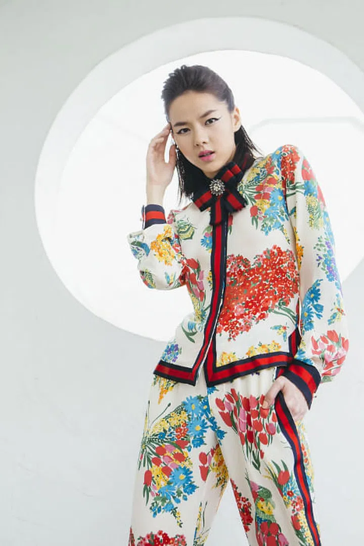 Our amazingly stunning Singapore model Jasmine S – follow her on Instagram at @jskg – is perfectly dressed for a day of visiting and eating, right? Jasmine is wearing Ivory “Corsage” printed silk twill long sleeve shirt and pyjamas pants with iconic web ribbon with a detachable cotton bow brooch, all by Gucci.