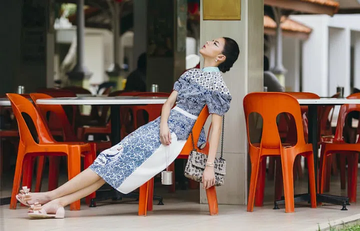 We can’t miss out a piece from Singapore’s most popular fashion designer Priscilla Shunmugam who is known for her spectacular cheongsam collections. This is the perfect dress for either a reunion dinner or for visiting day don’t you think? Jasmine is wearing the Arcade Dress by Ong Shunmugam and Jelly Sandals by Melissa, with Linear Bead Friendship Bracelets by Monica Vinader and the Intrecciato Armerina Olimpim in Fume New Bag by Bottega Veneta.