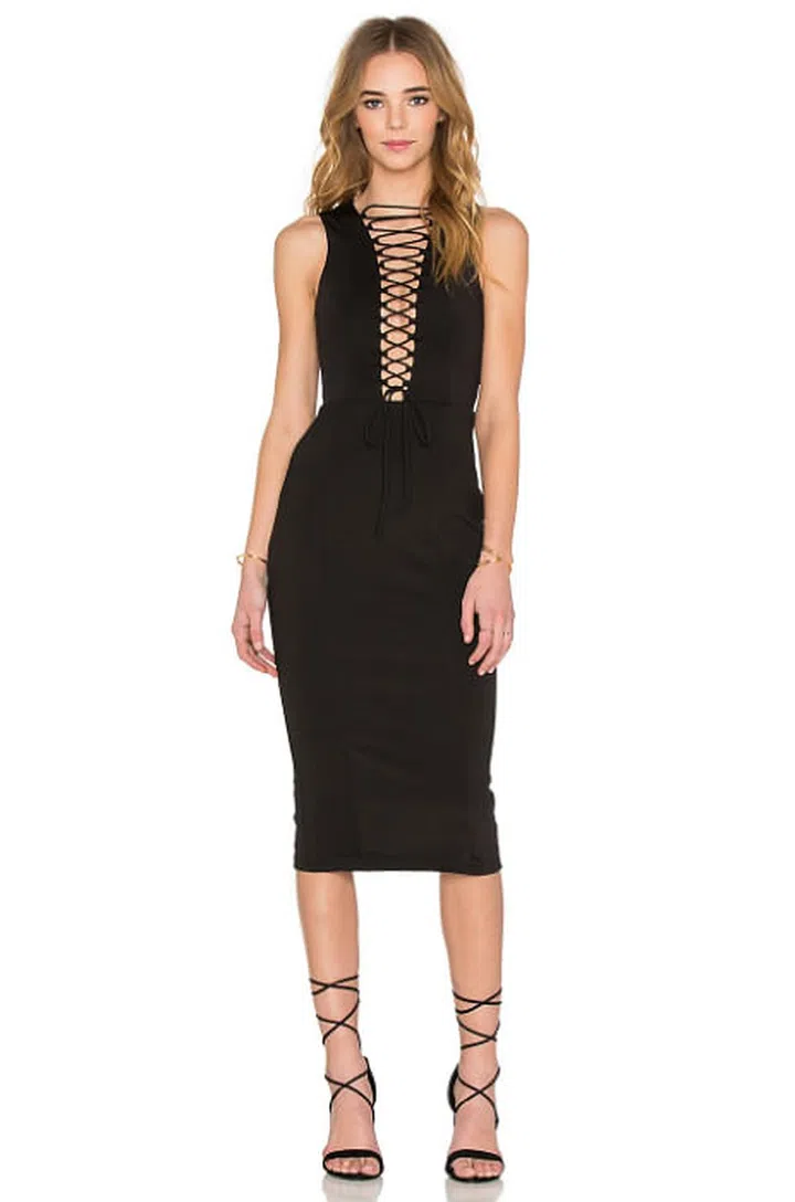This figure hugging dress exudes charismatic sex appeal and attitude with ease. Shop this dress at Revolve.