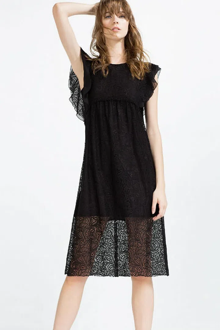 This romantic and filrty lace number will definitely impress your date! Shop this dress at Zara.