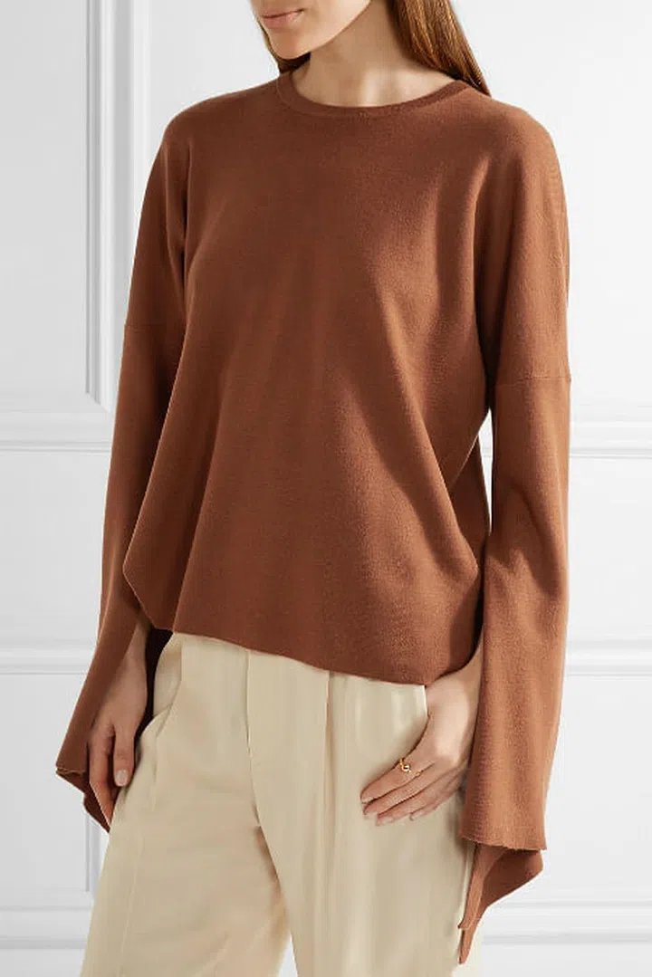 Nothing screams comfort like an oversized wool sweater. Characterised by a casual round neck, the extra long sleeves draw inspiration from the dramatic sleeves movement.
