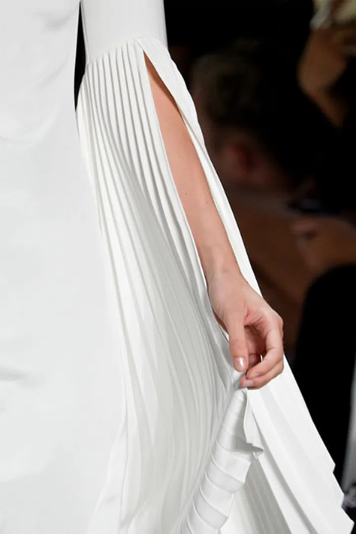 This season, the key feature on the sleeves is dubbed ‘the split sleeve’. It features a splice from the cuff up the sleeve, showing off your wrist and lower arm.