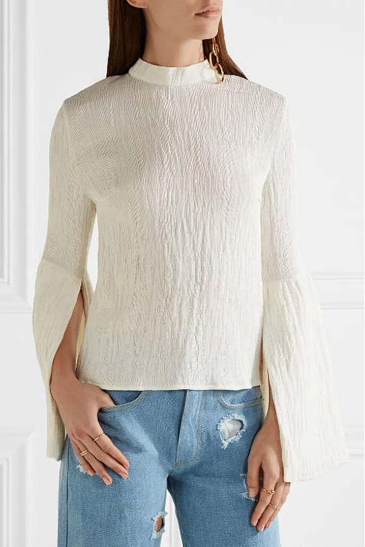 Distinguished by its split sleeves and pintuck details, you can wear with everything from sophisticated separates to pared-back denim.