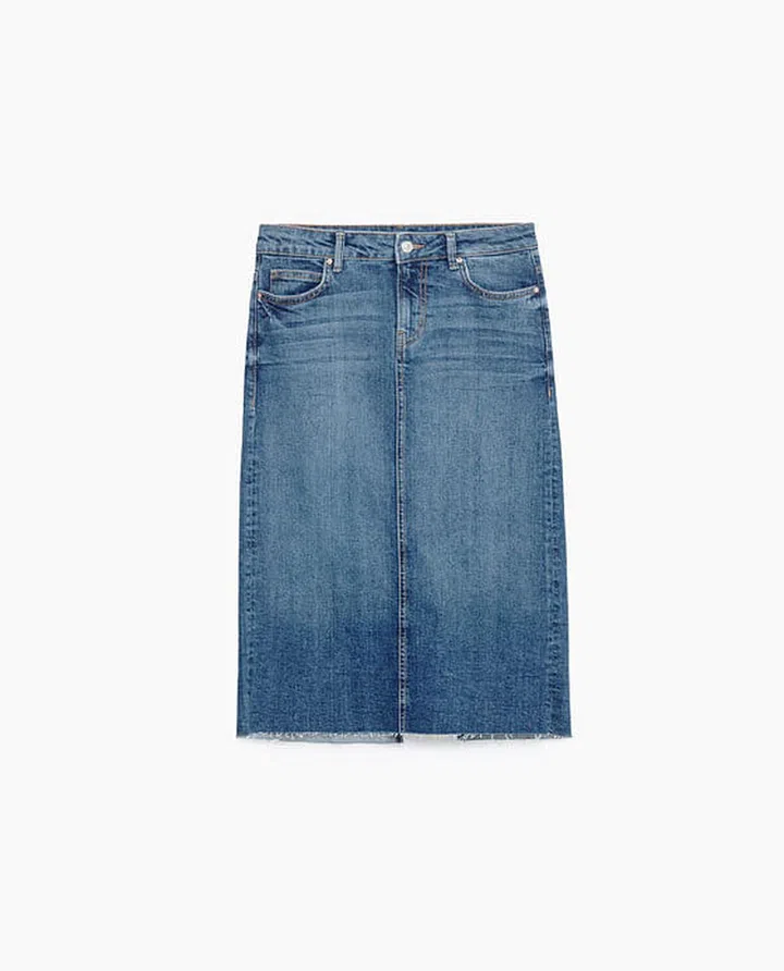 Denim midi skirt, $69.90 from Zara
