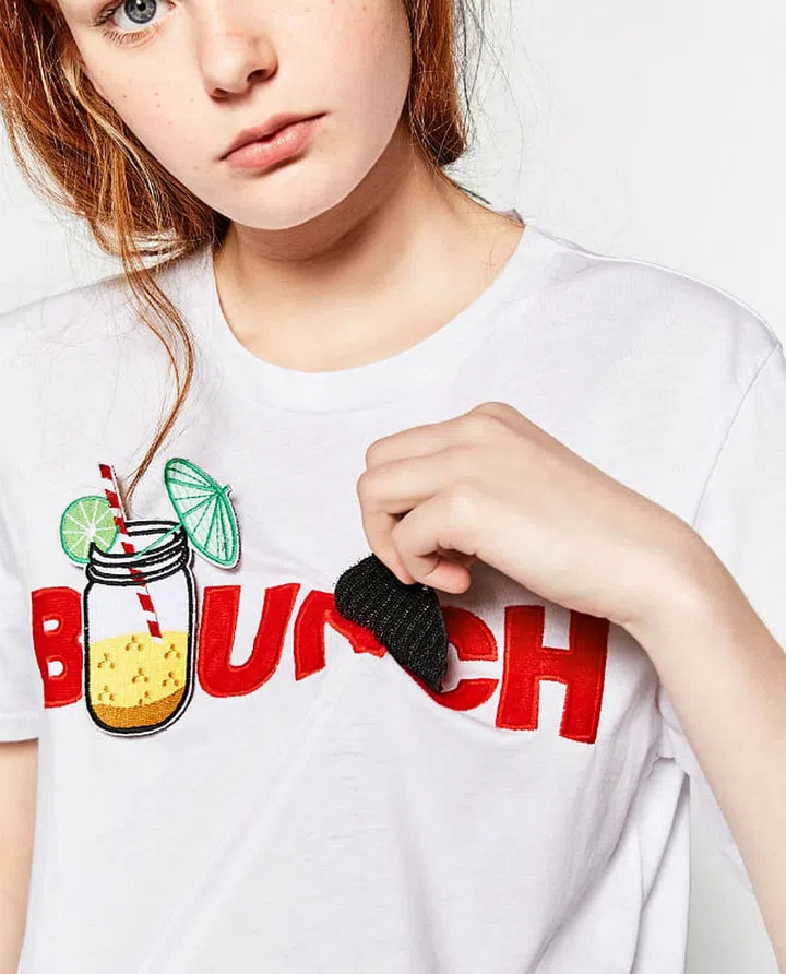 A t-shirt that says brunch with removable kitschy velcro patches? I am sold.