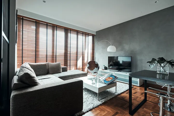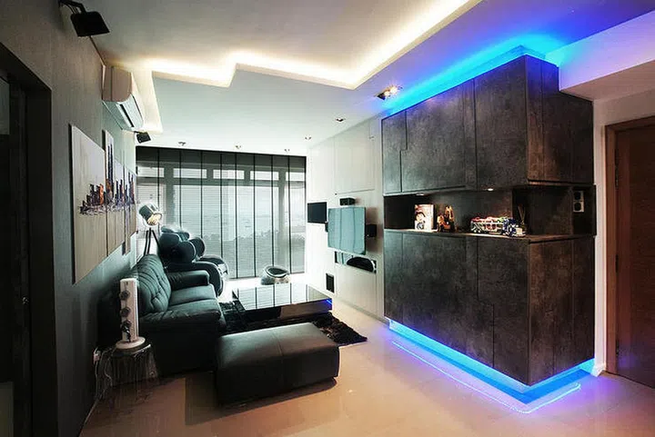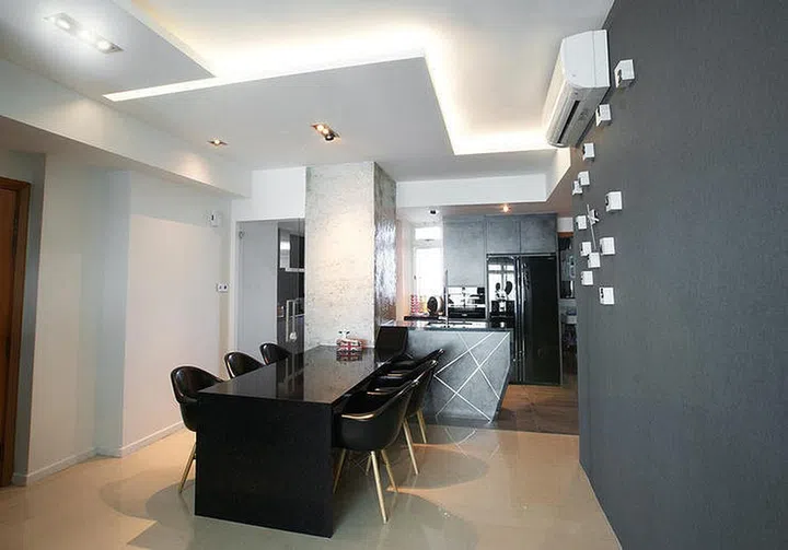 What's striking in this home is the extensive amount of grey used in the living and dining areas, as well as the distinctive shape of its cove lighting that gives the 1,600 sqf condominium unit a unique urban appeal.
