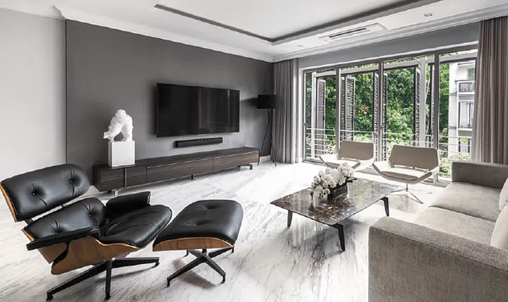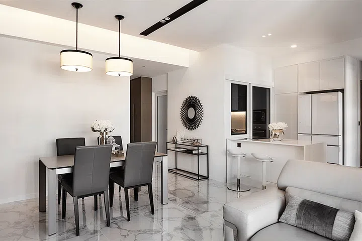 This 2,167sqf condominium apartment impresses with its simple yet chic design features. The homeowners of this four-bedroom apartment wanted a timeless design for their home, so they requested a modern classic look with a white-grey colour palette.