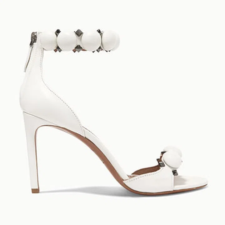 Instantly recognisable with its spherical detailed straps embedded with pyramid studs, this rendition of the iconic shoes is updated in a chic white colourway in leather.