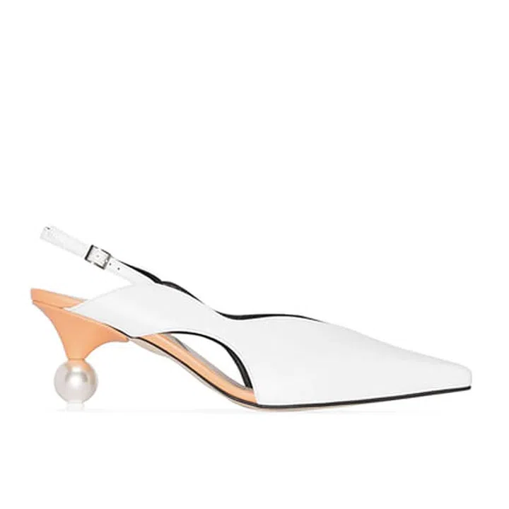 Contemporary Korean footwear label Yuul Yie is known for its special and unique shoe designs that often sport architectural influences and clean lines. These slingback pumps, which are set atop an opalescent pearl-esque sphere, perfectly encapsulates the brand’s modern aesthetic.