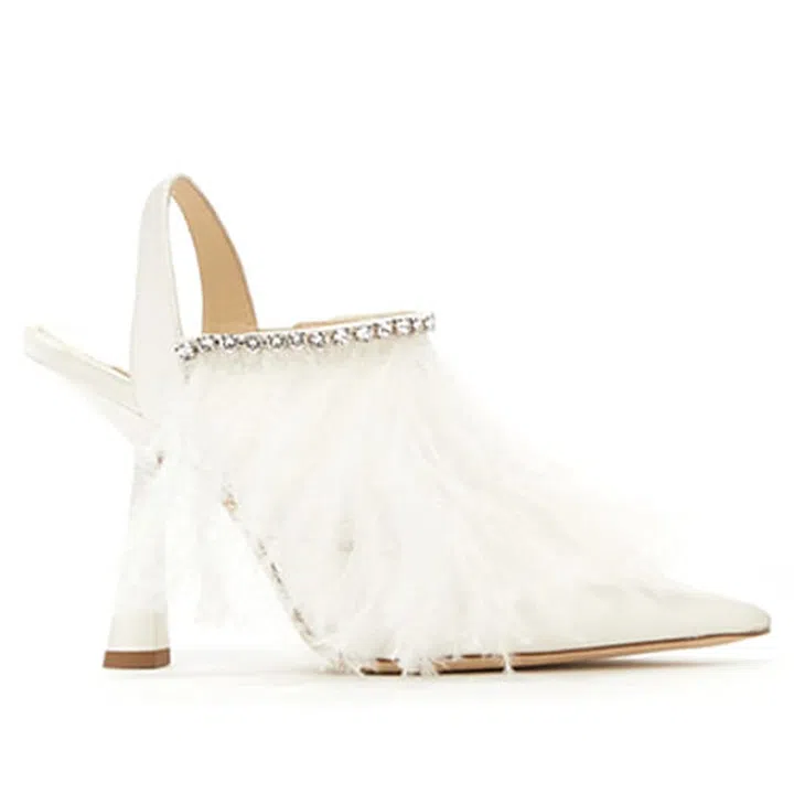 It’s worth considering to invest in a stylish pair this festive season. To help you out, we’ve rounded up our favourite pairs of glamorous white shoes of the season ahead. From unconventional architectural silhouettes, ornate gold trimmings and exuberant feather adornments, you’re sure to find a pair you’ll absolutely adore.