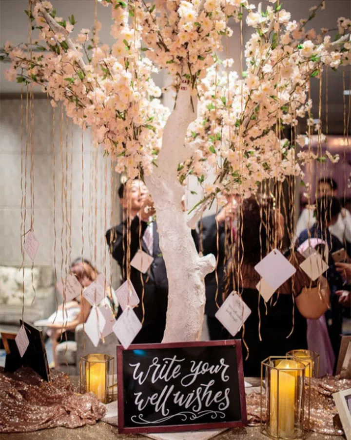 Bring the outdoors in with a gorgeous cherry blossom tree! Then get extra mileage from it and have it double as your guestbook.
