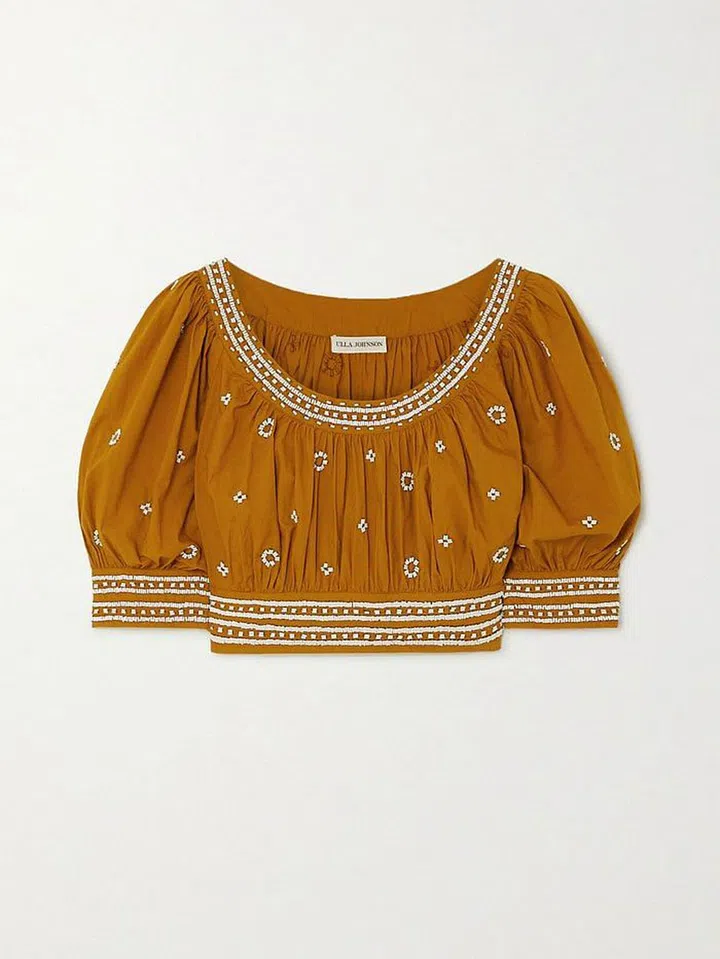 Zola cropped bead-embellished cotton top, US$395, Ulla Johnson.