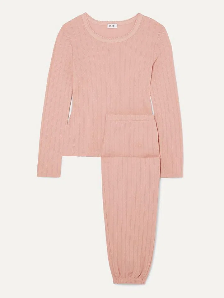 Pointelle-knit cotton-jersey top and pants set, US$170, LESET.