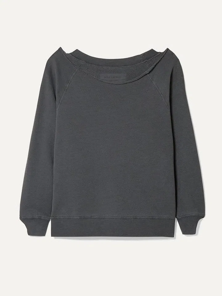 With a wide, raw-cut neckline and slashed cuffs for a deconstructed look, this sweatshirt is cut from soft loop-back cotton-jersey in a relaxed silhouette with raglan sleeves.