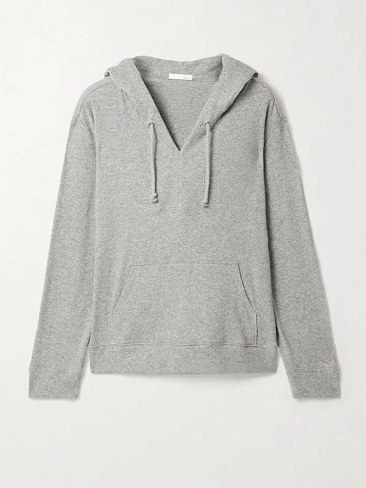This hoodie is just so soft. It’s rib-knitted with plenty of Pima cotton and modal and has a generous drawstring hood.