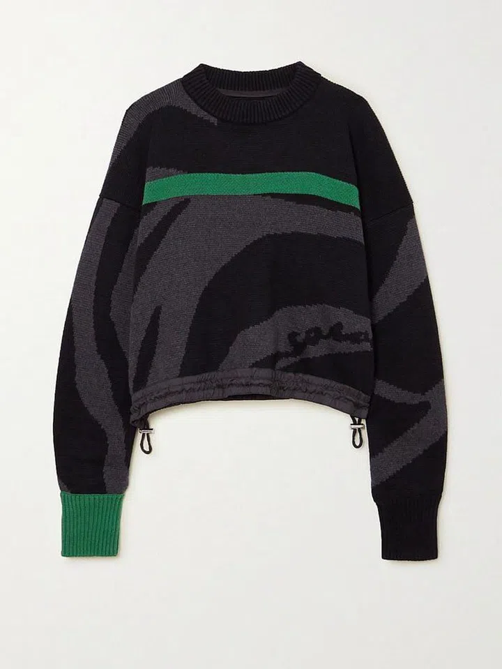 Cropped striped intarsia cotton sweater, US$595, Sacai.