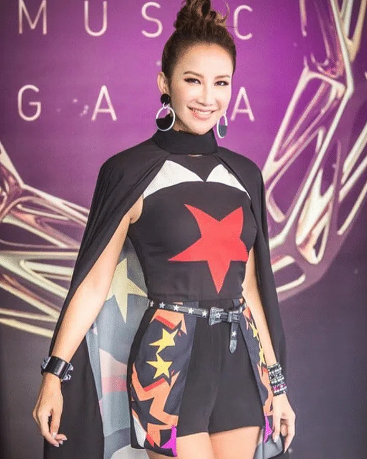 Asian bombshell Coco wore a Wonder Woman inspired dress — complete with a cape the featured star prints — to the Asian Music Gala 2017.