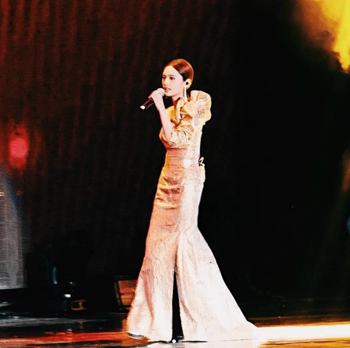 Taiwanese singer Rainie Yang also attended the Asian Music Gala 2017. Her magnificent outfit — a golden one-shoulder number by Vivienne Westwood — was impossible to miss.