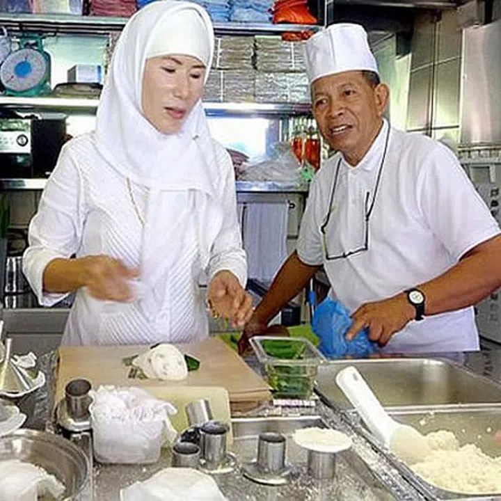 Madam Noor Zela Zain and her husband Mohamad Hashim Jumaat make their putu piring using a family recipe that hasn’t change since the 1950s. Double-steamed rice flower encases a molten centre of gula melaka and is served with salted grated coconut for a real taste of the past.