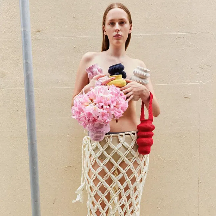 Why it’s one brand to watch: Founded by freelance designer and fashion director Toshiaki Oki, Nknit is a unisex brand specialising in bold knitwear designs. The brand delves into various knitting techniques, such as macrame and patchworking, while incorporating vibrant colours and experimenting with fashion-forward silhouettes. Its latest S/S 2024 collection explores layering with summer pieces like macrame items, knit vests, oversized crew-neck shirts, crop tops, high-neck tops, and silk scarves. In terms of bottoms, the brand focuses on lightweight knitwear to combat warm weather, offering pieces like cable knit shorts and vegan leather mini skirts.