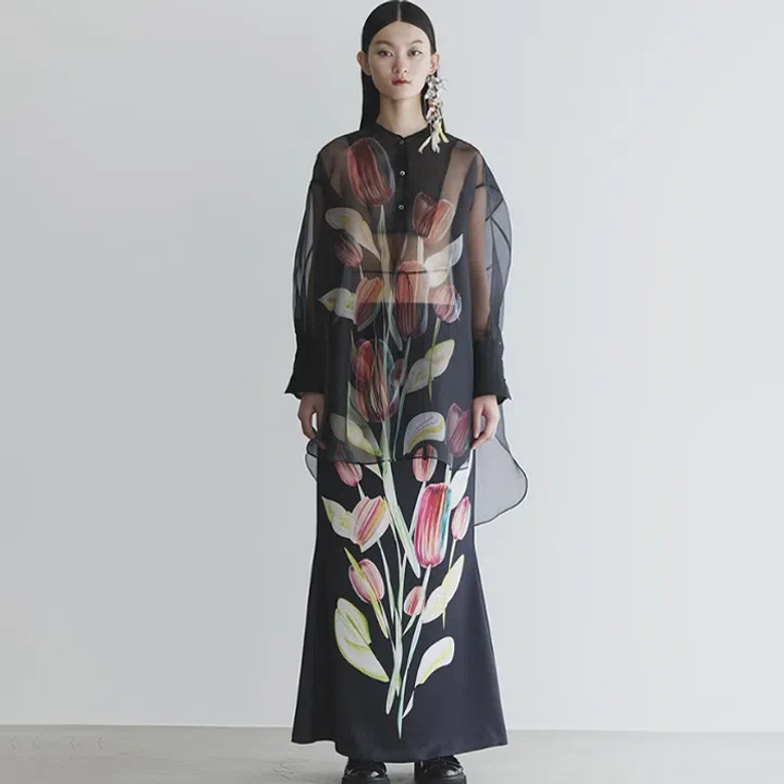 Why it’s one brand to watch: With prestigious accolades like the JFW Next Brand Award 2023 and the Tokyo Fashion Award 2023 under its belt, Fetico’s designs are the brainchild of Emi Funayama, a graduate of Esmod Japan in 2010. Infused with a cool 1990s-inflected charm, the brand’s creations have a certain je ne sais quoi. This vibe is unmistakable in the latest collection, “Do Not Disturb,” which takes cues from the iconic Faye Wong, known for her offbeat style. Expect plenty of see-through loungewear, floral pieces, and skin-tight sets in black and white.