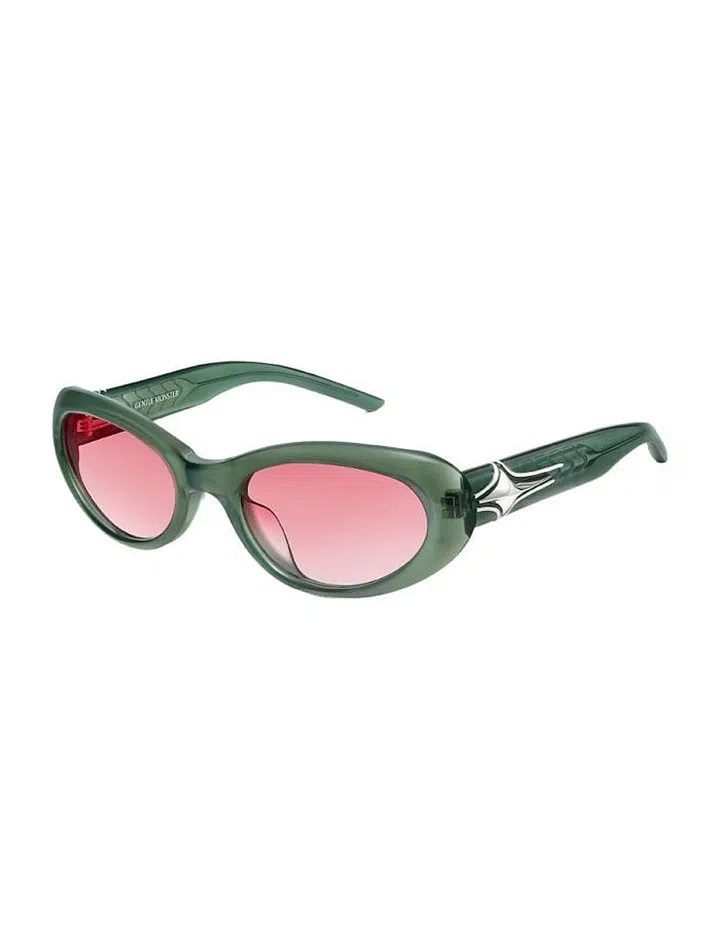 The star-shaped metalwork on the sides of these sunglasses is a subtle nod to the hardware and leather patchworks often seen on cowboy gear.