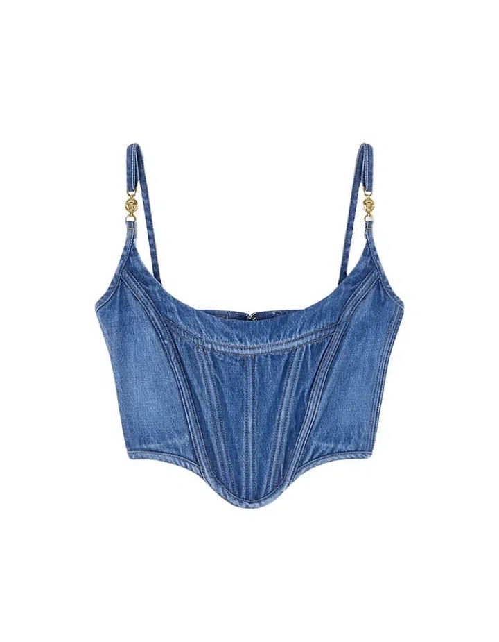 Channel the iconic American sharpshooter Annie Oakley in a reworked corset festooned with Medusa ’95 hardware.