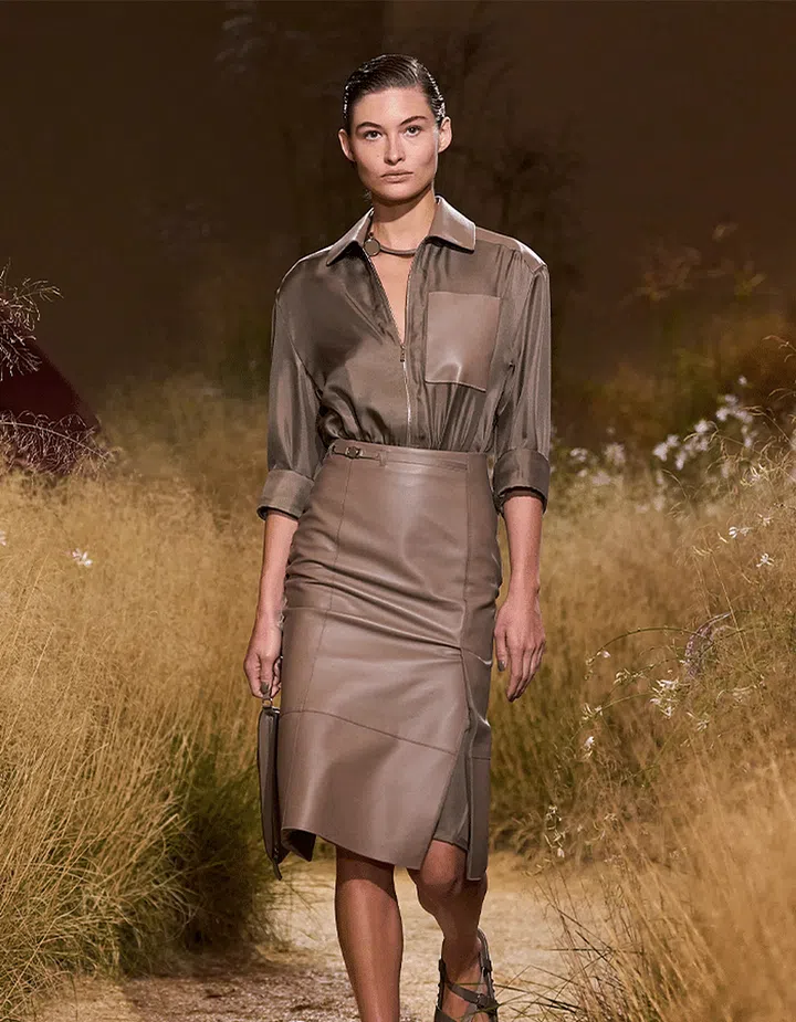 Look like a boss with a blazer paired with bermuda-length shorts at Chanel and Dries van Noten. Camel pencil skirts, grey suits, and white shirts make notable appearances at Proenza Schouler, Max Mara, Bottega Veneta and Gucci, with interesting fabrications and tailored in unconventional styles.